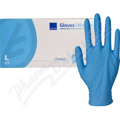 Vyšetřovací nitrilové rukavice Abena Classic, nepudrované, nesterilní. Dostupné ve velikostech S, M, L, XL. Lze je použít pro různé úkony, jako je úklid, ošetřování, manipulace s potravinami, laboratorní práce, manipulace s léky, apod..