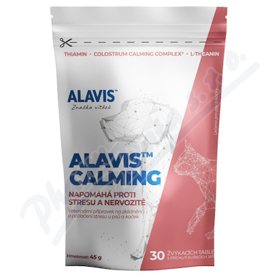 Přípravek na zklidnění a potlačení stresu u psů a koček. ALAVIS Calming je určen pro psy a kočky, které vykazují nervozitu, hyperaktivitu, úzkost či reagují na stres z prostředí. Přípravek obsahuje ojedinělé složení látek podporující vyrovnané chování.