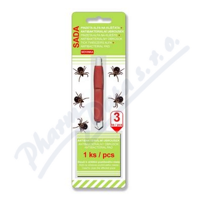 Pomocí této pinzety lehce a spolehlivě odstraníte klíště přisáté na kůži a antibakteriální ubrousek slouží k očištění postiženého místa. Vhodné pro lidi i zvířata.