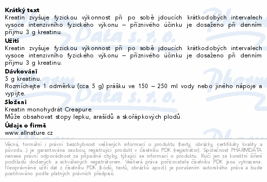 Kreatin zvyšuje fyzickou výkonnost při po sobě jdoucích krátkodobých intervalech vysoce intenzivního fyzického výkonu – příznivého účinku je dosaženo při denním příjmu 3 g kreatinu.