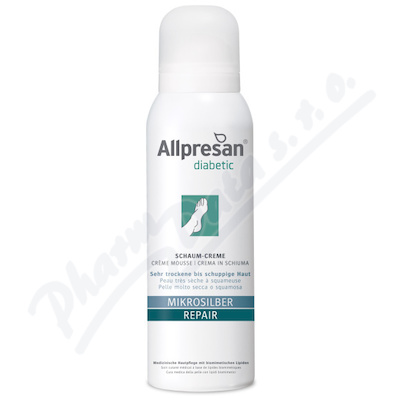 Krémová pěna s lipidy pro péči o suchou až šupinatou pokožku u diabetes mellius. Mikrostříbro má antibakteriální vlastnosti a pomáhá předcházet zánětům.