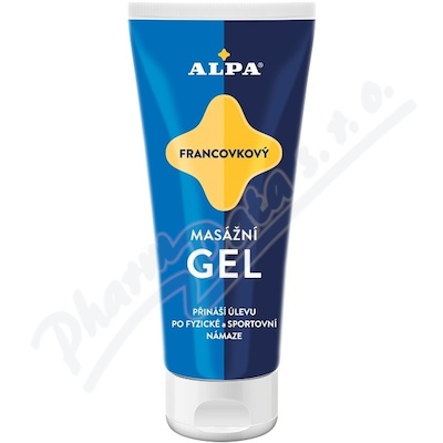 Bylinný gel ALPA je vhodný pro masáže pokožky v oblasti kloubů, svalů a páteře. Masáž "alpovou směsí bylin" (máta, eukalypt, rozmarýn, hřebíček, tymián aj.) má regenerační účinky a snižuje únavu a přítomnost mentolu podporuje lepší prokrvení pokožky.
