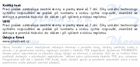 Prací prášek odstraňuje zaschlé skvrny a pachy staré až 7 dní. Díky unikátní technologii rychlého rozpouštění se prášek při kontaktu s vodou rychle rozpouští, okamžitě se aktivuje a proniká hluboko do vláken i při cyklech s nízkou teplotou.