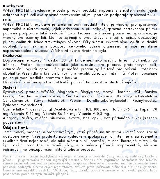 WHEY PROTEIN exclusive je zcela přírodní produkt, napomáhá s růstem svalů, jejich ochranou a při celkově správně nastaveném příjmu potravin podporuje spalování tuku.