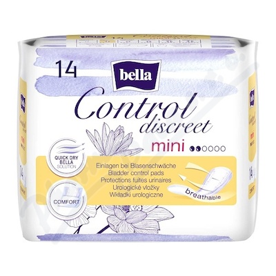 Prodyšné urologické vložky Bella Control Discreet Mini jsou jednotlivě baleny v diskrétních obalech. Jsou vyrobeny z jemné a měkké netkané textilie. Díky superabsorbentu jsou výrazně savější než jejich ekvivalent mezi hygienickými vložkami. Balení 14ks.