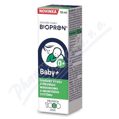 Biopron BABY+ je doplněk stravy s kombinací 2 probiotických kmenů a vitaminu D3. Suplementace probiotiky je doporučována pro podporu obnovy rovnováhy střevniho mikrobiomu.
