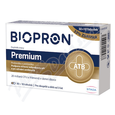 Biopron Premium je doplněk stravy s probiotiky a prebiotiky. Obsahuje 9 probiotických kmenů ve vysoké dávce 20 miliard CFU a je obohacen o prebiotické fruktooligosacharody vhodný pro děti od 3 let a dospělé.