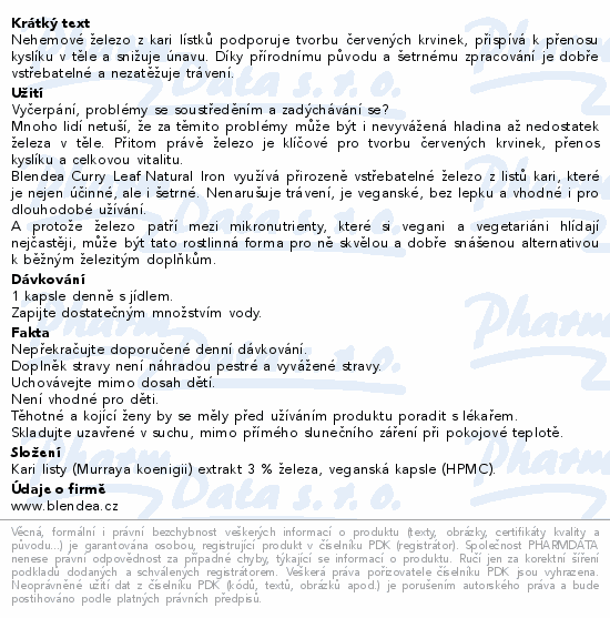 Nehemové železo z kari lístků podporuje tvorbu červených krvinek, přispívá k přenosu kyslíku v těle a snižuje únavu. Díky přírodnímu původu a šetrnému zpracování je dobře vstřebatelné a nezatěžuje trávení.