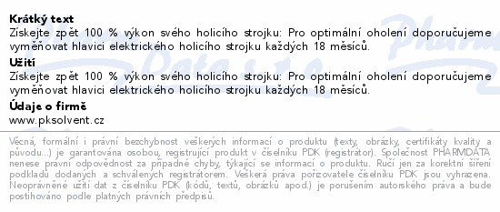 Získejte zpět 100 % výkon svého holicího strojku: Pro optimální oholení doporučujeme vyměňovat hlavici elektrického holicího strojku každých 18 měsíců.