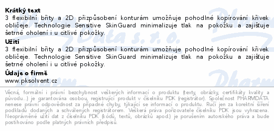 3 flexibilní břity a 2D přizpůsobení konturám umožňuje pohodlné kopírování křivek obličeje. Technologie Sensitive SkinGuard minimalizuje tlak na pokožku a zajišťuje šetrné oholení i u citlivé pokožky.