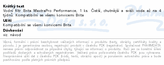 Vodní filtr Brita MaxtraPro Performance, 1 ks. Čistší, chutnější a svěží voda...