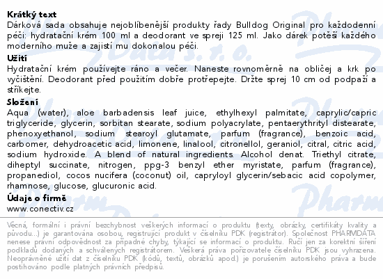 Dárková sada obsahuje nejoblíbenější produkty řady Bulldog Original pro každodenní péči: hydratační krém 100 ml a deodorant ve spreji 125 ml. Jako dárek potěší každého moderního muže a zajistí mu dokonalou péči.
