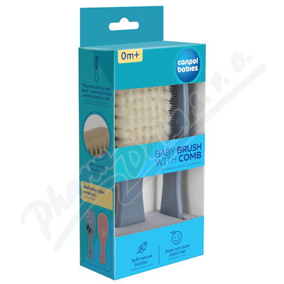Kartáč na vlasy s přírodními, měkkými štětinami a hřebenem v sadě. Pro každodenní péči o vlasy vašeho děťátka. Hřeben má zaoblené zuby, které nedráždí citlivou pokožku děťátka. Lze použít v prvních dnech po narození.