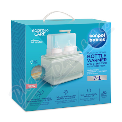 Elektrický ohřívač a sterilizátor lahví Canpol babies 7v1 s termostatem a lampou. Nabízí 7 různých režimů. Kapacita pro dvě lahve