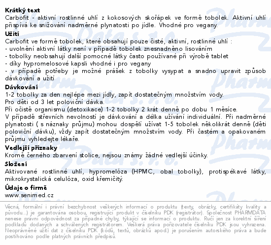 Carbofit - aktivní rostlinné uhlí z kokosových skořápek ve formě tobolek. Aktivní uhlí přispívá ke snižování nadměrné plynatosti po jídle. Vhodné pro vegany.
