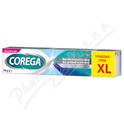 Fixační krém Corega Bez příchuti extra silný poskytuje extra silnou fixaci po dobu...