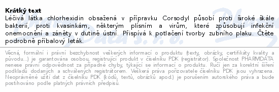 Farmakoterapeutická skupina: Stomatologické přípravky - Antiinfektiva a antiseptika pro lokální léčbu v dutině ústní - Chlorhexidin