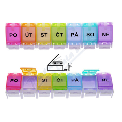 Dávkovač léků je rozdělen na 7 částí nebo pomocí zkratek názvů dnů v týdnu. Každý den se otevírá samostatně pomocí stlačení zepředu se den automaticky otevře, zatímco ostatní dny zůstávají pečlivě uzavřeny.