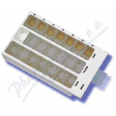 Slouží k přehlednému uspořádání a spolehlivému dávkování léků či potravinových doplňků doma i na cestách. Je označen jednoduchými popisky zobrazujícími denní dobu. Dostupný v několika barevných provedeních. Velikost dávkovače 136 x 81 x 25 mm (d x š x v)