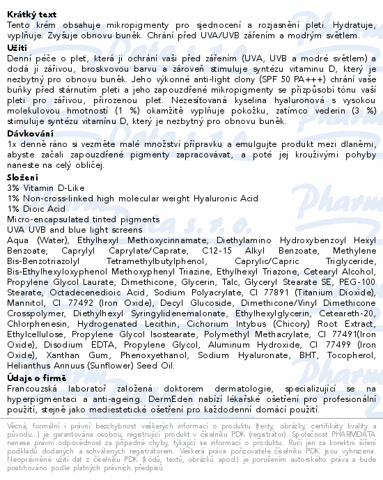 Tento krém obsahuje mikropigmenty pro sjednocení a rozjasnění pleti. Hydratuje, vyplňuje. Zvyšuje obnovu buněk. Chrání před UVA