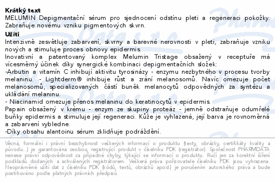 MELUMIN Depigmentační sérum pro sjednocení odstínu pleti a regeneraci pokožky. Zabraňuje novému vzniku pigmentových skvrn.