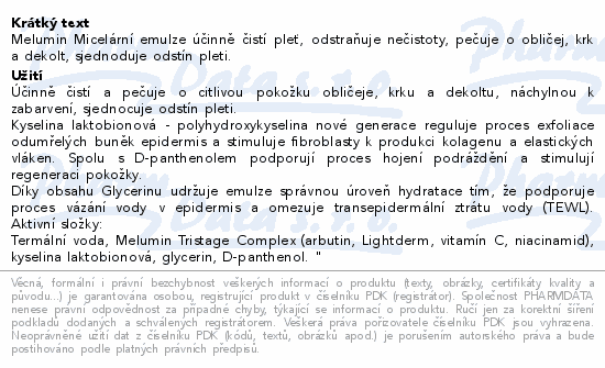 Melumin Micelární emulze účinně čistí pleť, odstraňuje nečistoty, pečuje o obličej, krk a dekolt, sjednoduje odstín pleti.