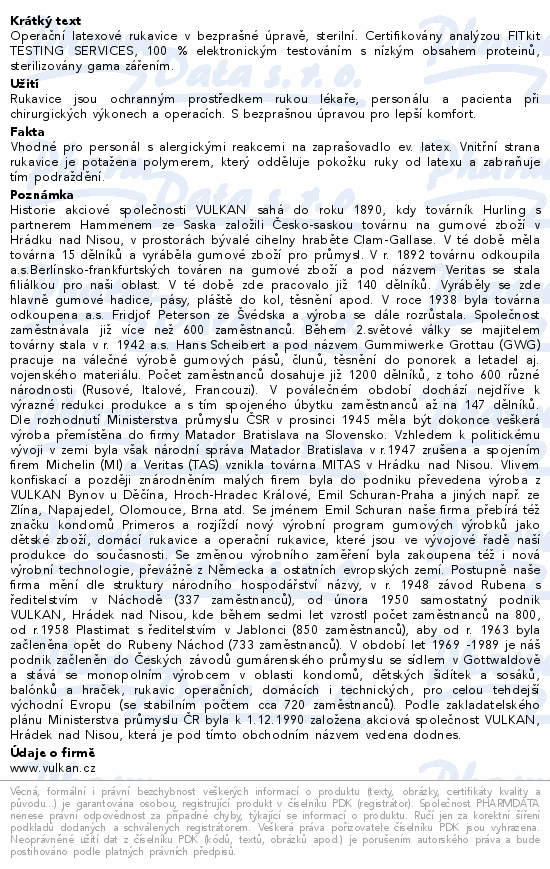Operační latexové rukavice v bezprašné úpravě, sterilní. Certifikovány analýzou FITkit TESTING SERVICES, 100 % elektronickým testováním s nízkým obsahem proteinů, sterilizovány gama zářením.