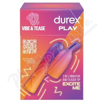 Durex Play 2v1 Vibrátor se stimulační špičkou. Převezměte kontrolu nad svým potěšením s tímto 2v1 vibrátorem se stimulační špičkou. Zvyšte svůj požitek ze hry nanesením některého z lubrikantů Durex na vodní bázi.