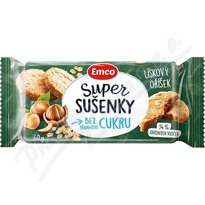 Super sušenky lískový oříšek je zdravější alternativa ke klasickým Emco oříškovým ovesným sušenkám. Obsahují 34% ovesných vloček a maximální chuť lískového oříšku.