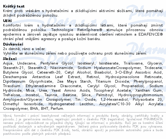Krém proti vráskám s hydratačními a zklidňujícími aktivními složkami, které pomáhají zklidnit podrážděnou pokožku.