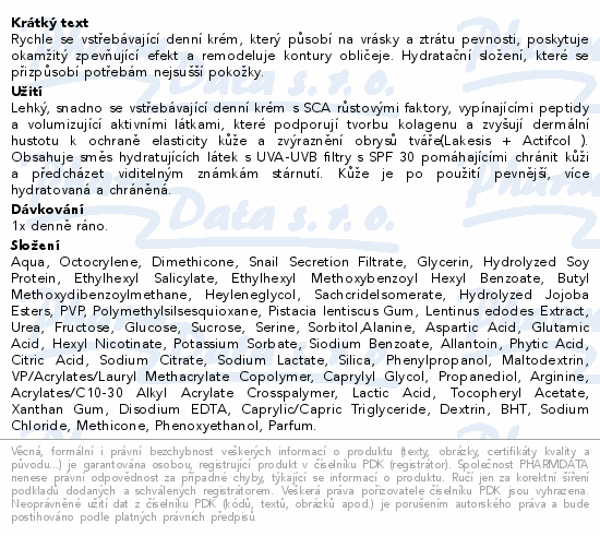 Rychle se vstřebávající denní krém, který působí na vrásky a ztrátu pevnosti, poskytuje okamžitý zpevňující efekt a remodeluje kontury obličeje. Hydratační složení, které se přizpůsobí potřebám nejsušší pokožky.