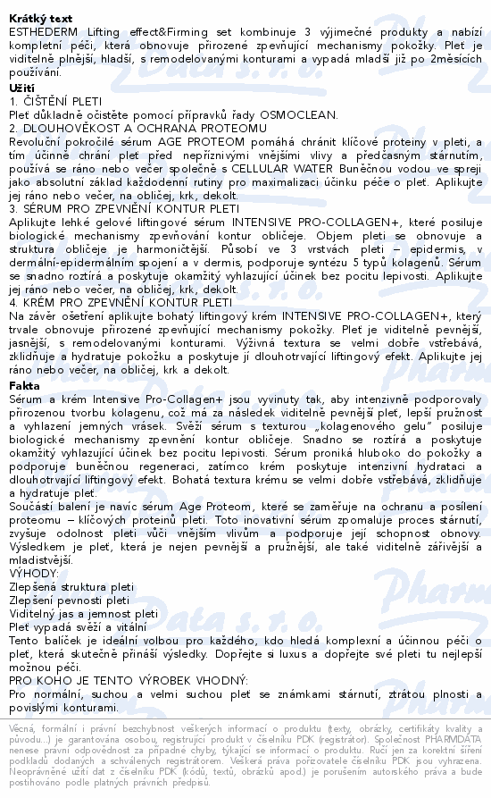 ESTHEDERM Lifting effect&Firming set kombinuje 3 výjimečné produkty a nabízí kompletní péči, která obnovuje přirozené zpevňující mechanismy pokožky. Pleť je viditelně plnější, hladší, s remodelovanými konturami a vypadá mladší již po 2měsících používání.