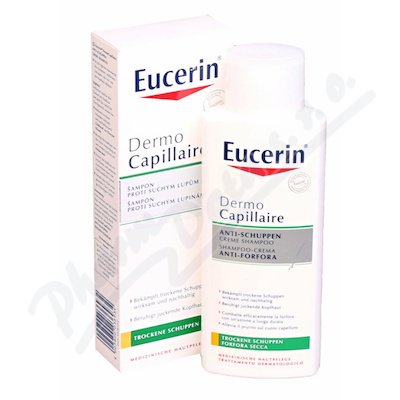 Eucerin DermoCapillaire šampon proti suchým lupům - bílé šupinky padající z pokožky a vlasů. Jemné složení minimalizuje riziko podráždění vlasové pokožky.