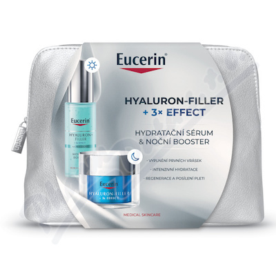 HYALURON-FILLER + 3x EFFECT Hydratační Booster sérum na první vrásky vyplňuje a povzbuzuje pleť díky intenzivní hydrataci. HYALURON-FILLER + 3x EFFECT Noční hydratační booster s gelovou texturou obsahuje kyselinu hyaluronovou, která redukuje vrásky.