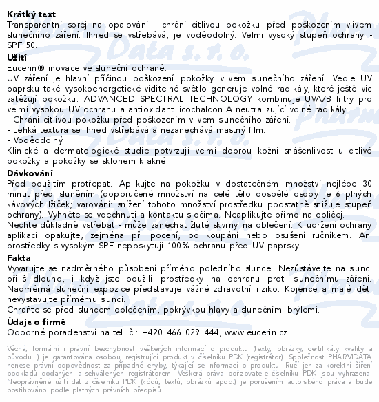 Transparentní sprej na opalování - chrání citlivou pokožku před poškozením vlivem slunečního záření. Ihned se vstřebává, je voděodolný. Velmi vysoký stupeň ochrany - SPF 50.