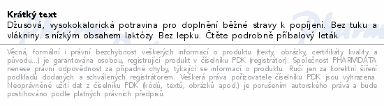 Džusová, vysokokalorická potravina pro doplnění běžné stravy k popíjení. Bez tuku a vlákniny. s nízkým obsahem laktózy. Bez lepku. Čtěte pozorně příbalový leták.
