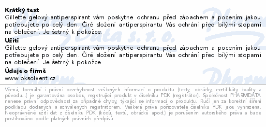 Gillette gelový antiperspirant vám poskytne ochranu před zápachem a pocením jakou potřebujete po celý den. Čiré složení antiperspirantu Vás ochrání před bílými stopami na oblečení. Je šetrný k pokožce.