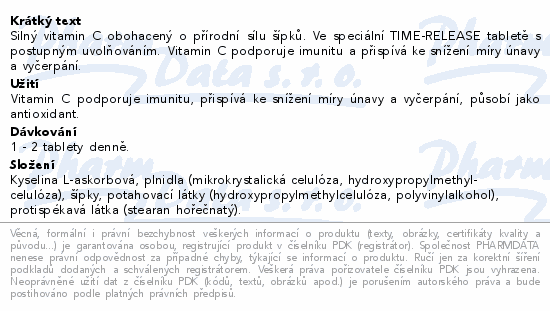 Silný vitamin C obohacený o přírodní sílu šípků. Ve speciální TIME-RELEASE tabletě s postupným uvolňováním. Vitamin C podporuje imunitu a přispívá ke snížení míry únavy a vyčerpání.