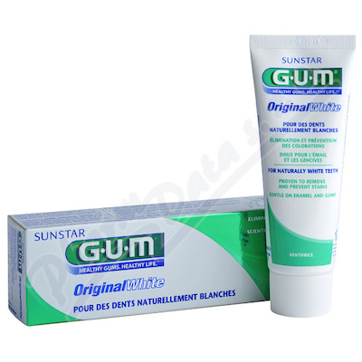 GUM Original White 75 ml, bělicí zubní pasta. Nový koncept proti pigmentacím a zubnímu plaku, viditelný účinek.