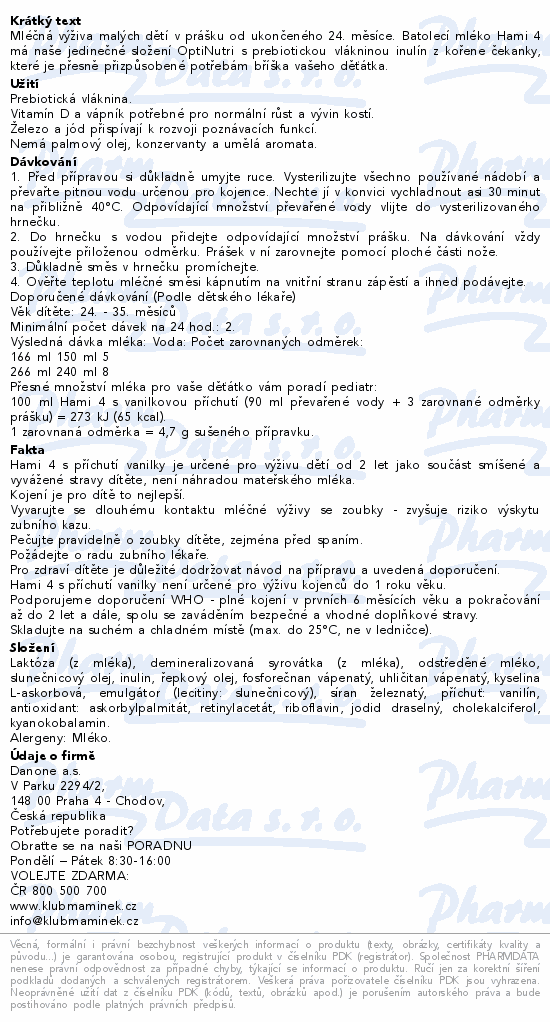 Mléčná výživa malých dětí v prášku od ukončeného 24. měsíce. Batolecí mléko Hami 4 má naše jedinečné složení OptiNutri s prebiotickou vlákninou inulín z kořene čekanky, které je přesně přizpůsobené potřebám bříška vašeho děťátka.