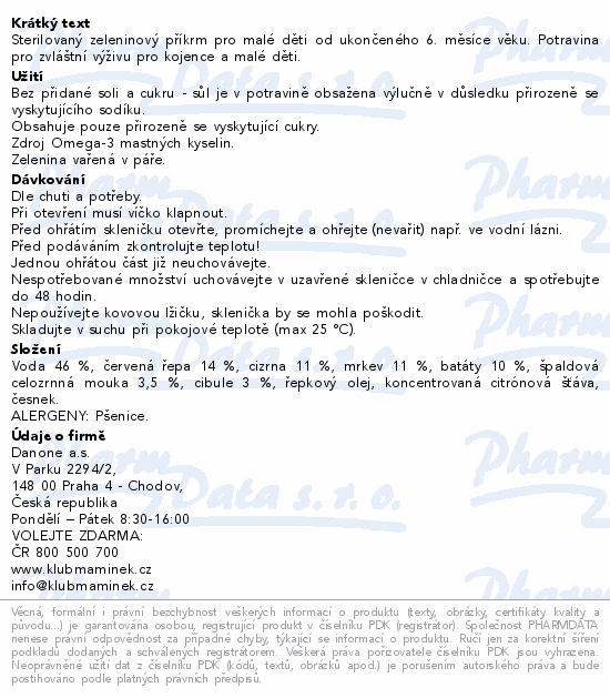 Sterilovaný zeleninový příkrm pro malé děti od ukončeného 6. měsíce věku. Potravina pro zvláštní výživu pro kojence a malé děti.