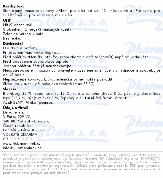 Sterilovaný maso-zeleninový příkrm pro děti od uk. 12. měsíce věku. Potravina pro zvláštní výživu pro kojence a malé děti.