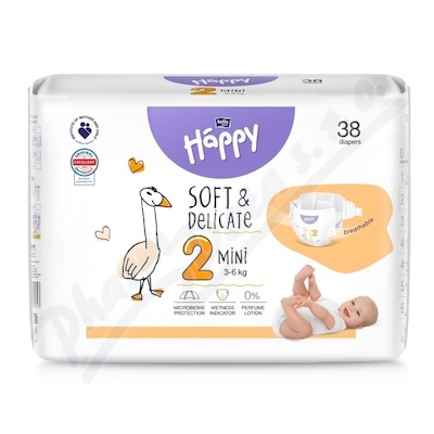 Happy dětské plenky Soft & Delicate vel. 2 jsou určeny pro miminka s hmotností 3–6 kg. Díky jemnému a prodyšnému materiálu poskytují maximální pohodlí a zároveň chrání citlivou dětskou pokožku před podrážděním.