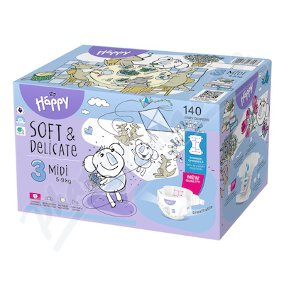 Plenky Bella Baby Happy Soft & Delicate ve velikosti Midi jsou doporučeny pro děti o hmotnosti 5 až 9 kg. Pleny padnou jako ulité, a přitom si zachovávají savost a jemnost. Kvalita plenek je potvrzená nezávislým dermatologickým institutem Dermatest.