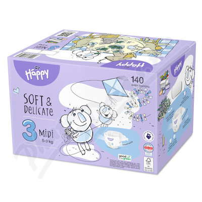 Plenky Bella Baby Happy Soft & Delicate ve velikosti Midi jsou doporučeny pro děti o hmotnosti 5 až 9 kg. Pleny padnou jako ulité, a přitom si zachovávají savost a jemnost. Kvalita plenek je potvrzená nezávislým dermatologickým institutem Dermatest.
