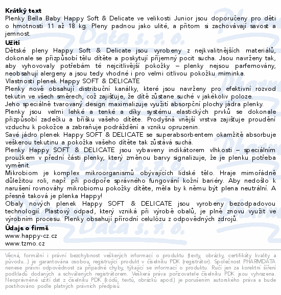 Plenky Bella Baby Happy Soft & Delicate ve velikosti Junior jsou doporučeny pro děti o hmotnosti 11 až 18 kg. Pleny padnou jako ulité, a přitom si zachovávají savost a jemnost.