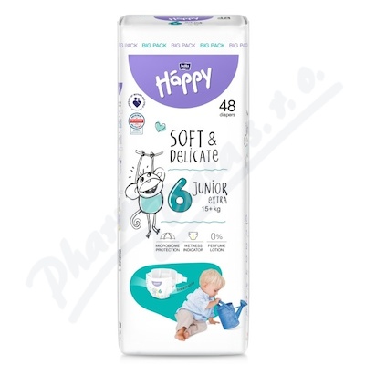 Happy dětské plenky Soft & Delicate vel. 6 jsou určeny pro děti s hmotností 15 kg a více, které potřebují vysokou savost a spolehlivou ochranu při každodenním pohybu i během spánku.