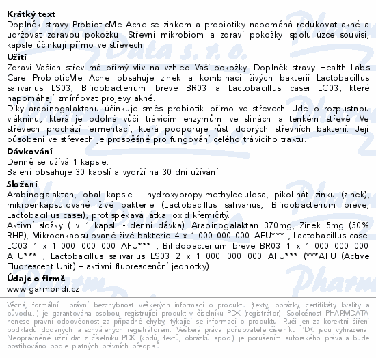 Doplněk stravy ProbioticMe Acne se zinkem a probiotiky napomáhá redukovat akné a udržovat zdravou pokožku. Střevní mikrobiom a zdraví pokožky spolu úzce souvisí, kapsle účinkují přímo ve střevech.