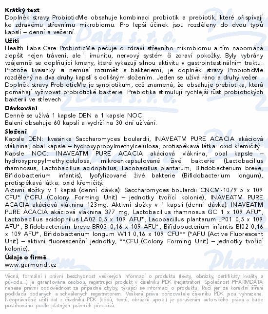 Doplněk stravy ProbioticMe obsahuje kombinaci probiotik a prebiotik, které přispívají ke zdravému střevnímu mikrobiomu. Pro lepší účinek jsou rozděleny do dvou typů kapslí – denní a večerní.