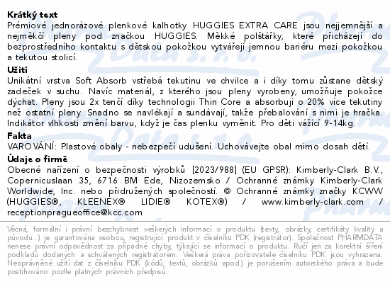 Prémiové jednorázové plenkové kalhotky HUGGIES EXTRA CARE jsou nejjemnější a nejměkčí pleny pod značkou HUGGIES. Měkké polštářky, které přicházejí do bezprostředního kontaktu s dětskou pokožkou vytvářejí jemnou bariéru mezi pokožkou a tekutou stolicí.
